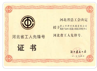 河北省工人先锋号证书