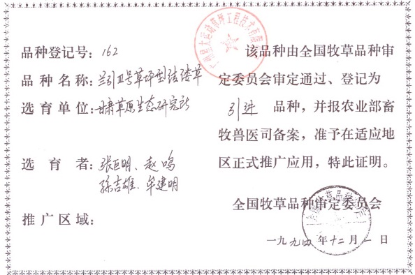 中国草业科技奖证书